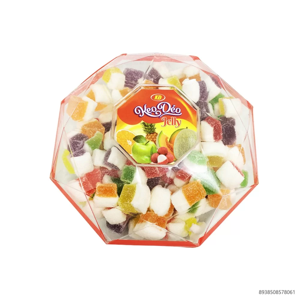 - Kẹo dẻo Jelly là sự pha trộn đặc biệt giữa hương vị trái cây tự nhiên với đường cùng các nguyên liệu siro đường, gelatin, axit citric... Từng viên kẹo dẻo được làm cẩn thận thành rất đẹp và ngon miệng, đảm bảo bố mẹ và các bé yêu đều vừa kết, vừa nghiền.