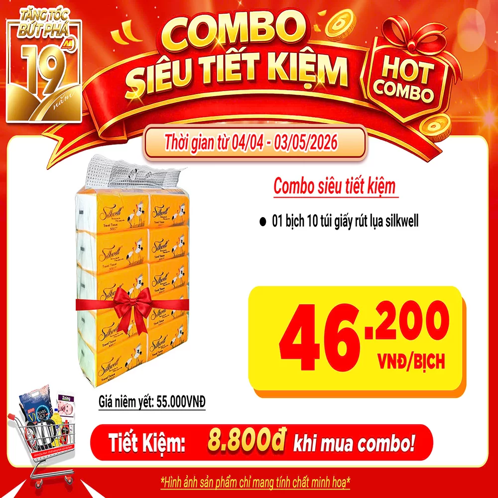 Lốc 5 gói khăn rút lụa Minh cầu vàng 200 x 198 x300 tờ