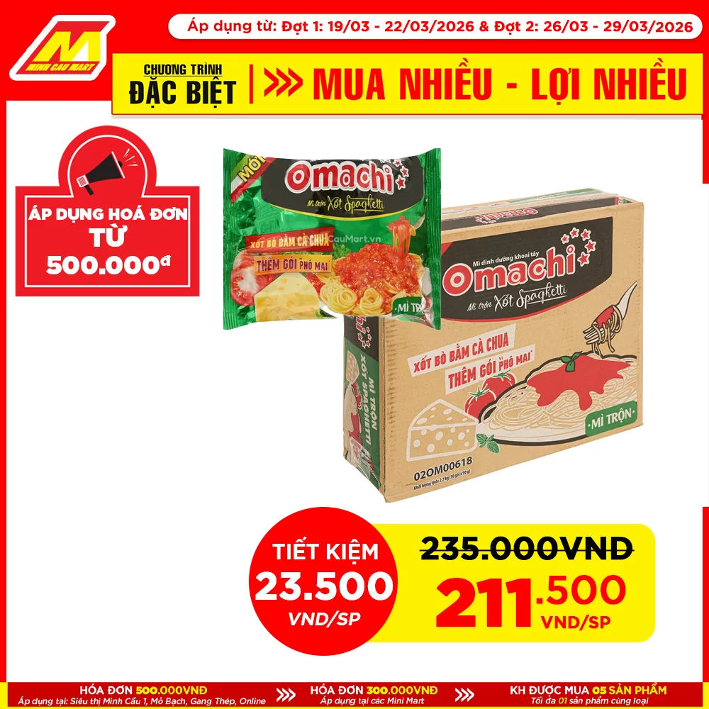 Mì dinh dương khoai tây Omachi trộn xốt Spaghetti 90g 30 gói/thùng